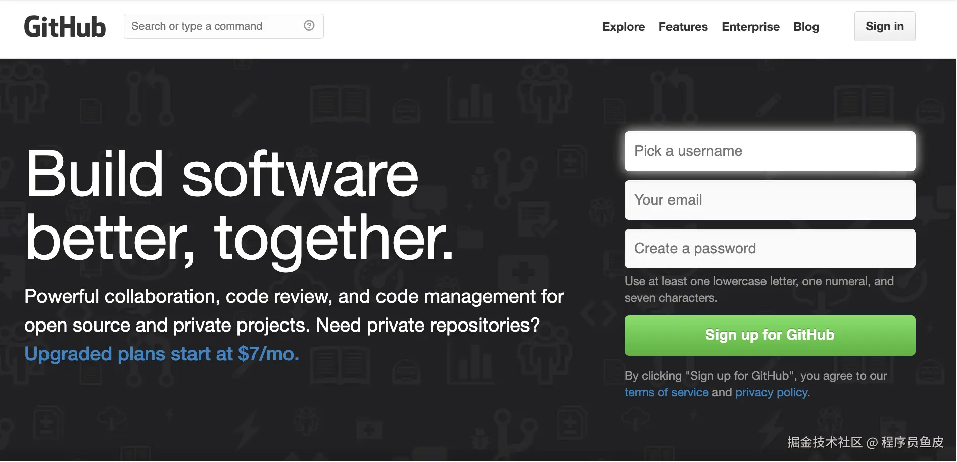 有趣的是,GitHub 刚开始就有付费策略了(Pricing)