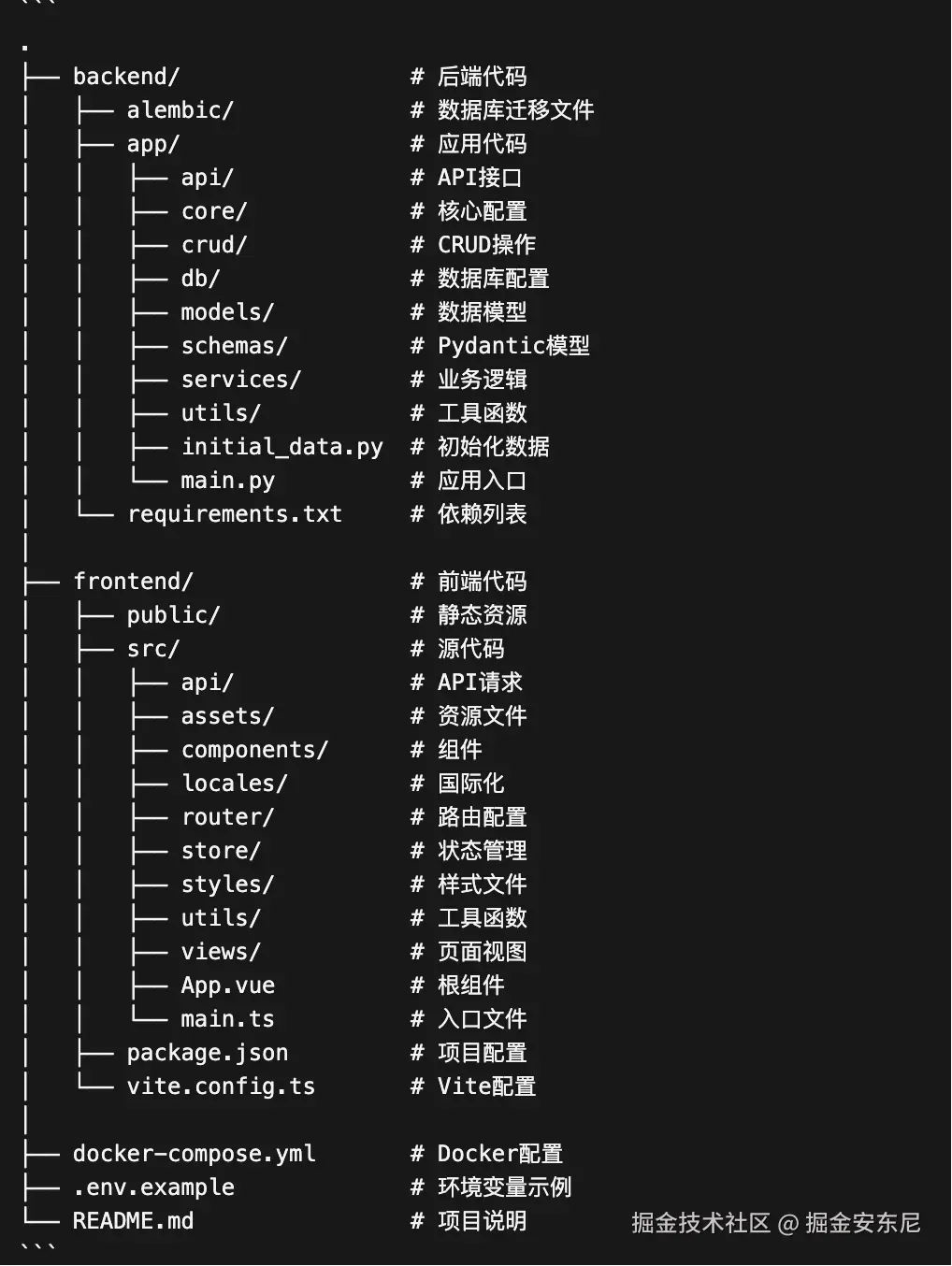 过程中可以看到前后端代码结构相当之完整,包括各个模块的设计很标准、代码规范、文档细致: