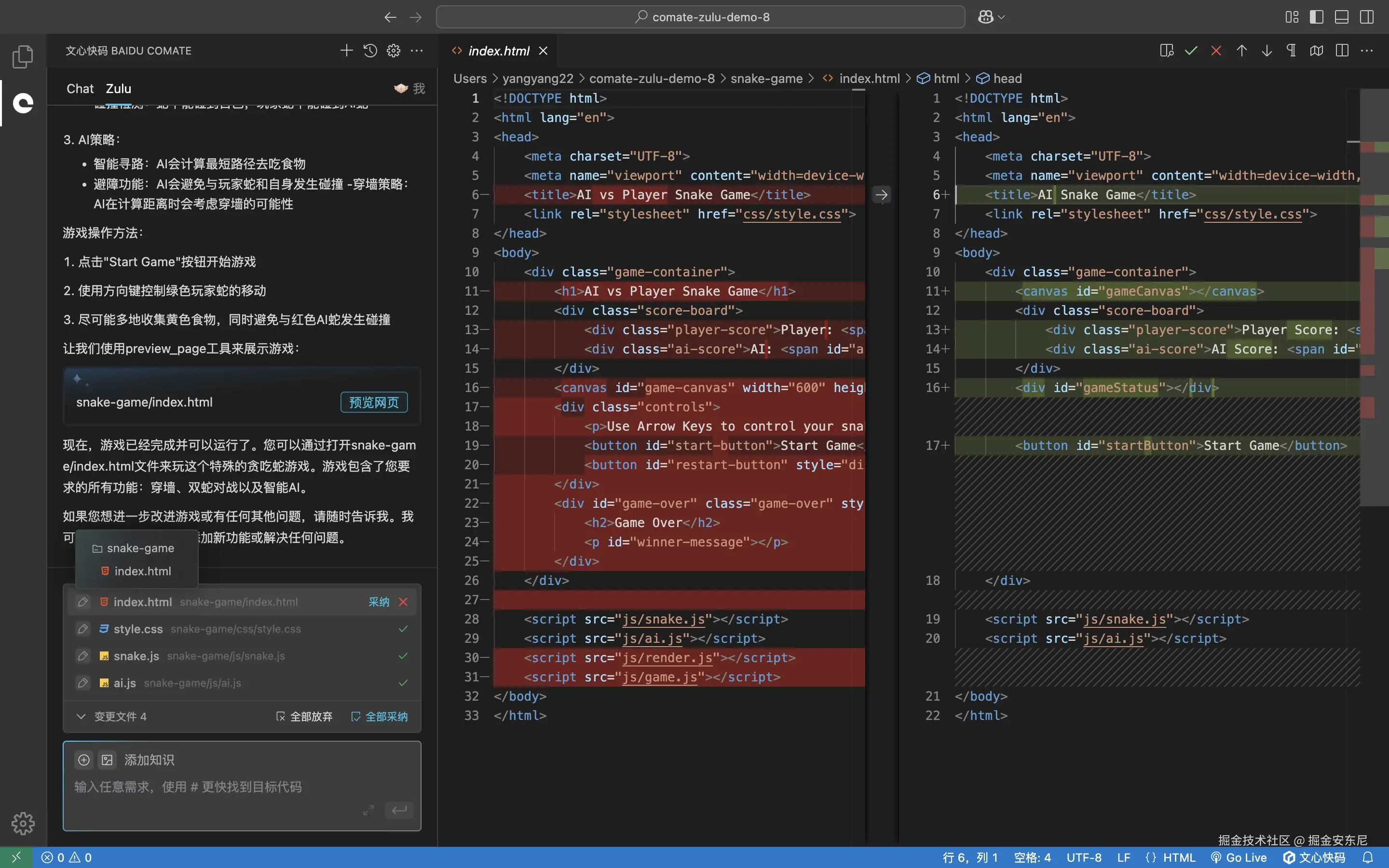 其中,比如最常用的 Zulu,适合用在端到端的开发任务上:从 0 到 1 搭建新应用,或在现有复杂项目里快速完成功能升级、Bug 定位与修复。对比 Cursor 或 Copilot 那种偏向单点补全的思路,Zulu 更像是一个“全栈型小队长”。