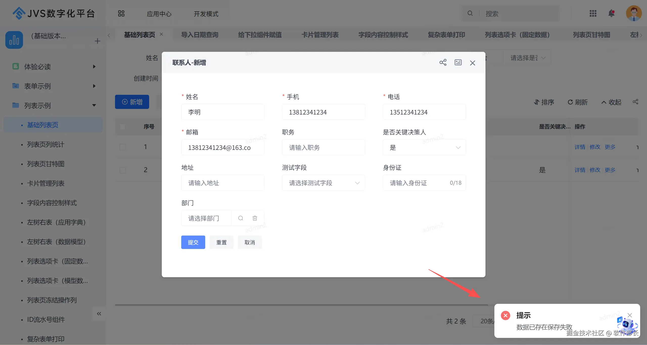 这里, 我结合JVS低代码平台,详细解析如何通过表单和逻辑的可视化配置去实现列表页新增数据时的字段重复校验。