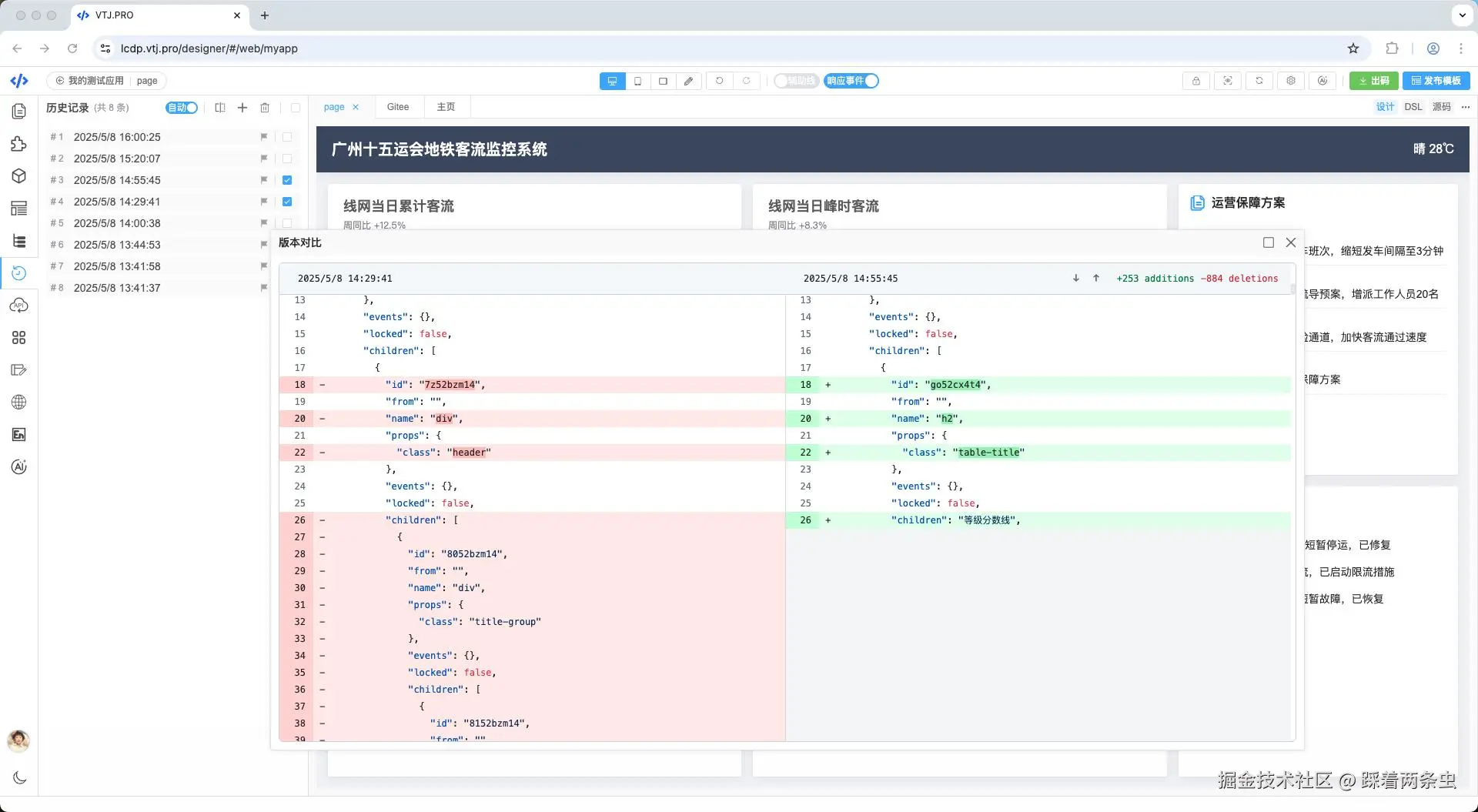 近日,领先的开源AI低代码引擎VTJ.PRO正式发布0.13.22版本,重点增强了历史记录功能,支持自动与手动保存、标记管理和版本对比等实用特性。