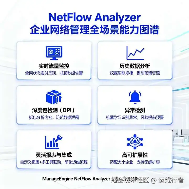 带宽管理就像一场 24 小时不停的 “杂耍”—— 既要时刻盯着网络流量怕出故障,又要绞尽脑汁优化带宽性能,还要在告警响起时火速定位问题根源。对依赖网络运转的企业来说,“预防” 永远比 “补救” 更重要,而这一切,都需要一款靠谱的流量分析工具来助力。今天就带大家深入了解:ManageEngine NetFlow Analyzer 如何通过精准流量监控与深度分析,重新定义企业网络管理效率。