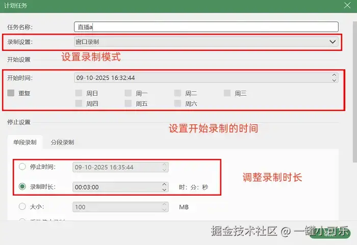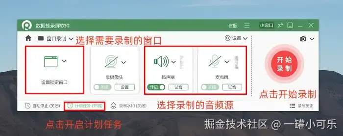 步骤2:进了录制模式的页面,你就能选择要录哪个直播窗口啦。要是你想实现自动化录制,可以打开 “计划录制任务” ,在那儿调整录制时长,开始录制时间等。弄好了之后,软件就会根据你设置的时间自动完成录制了。