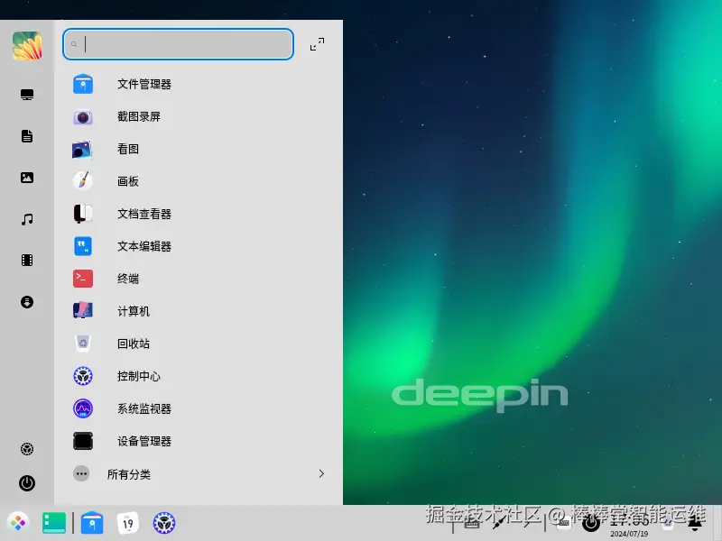 (2)使用root用户登录进入桌面系统,可单击左下角的启动器图标,查看系统中的程序,如图9-8所示。