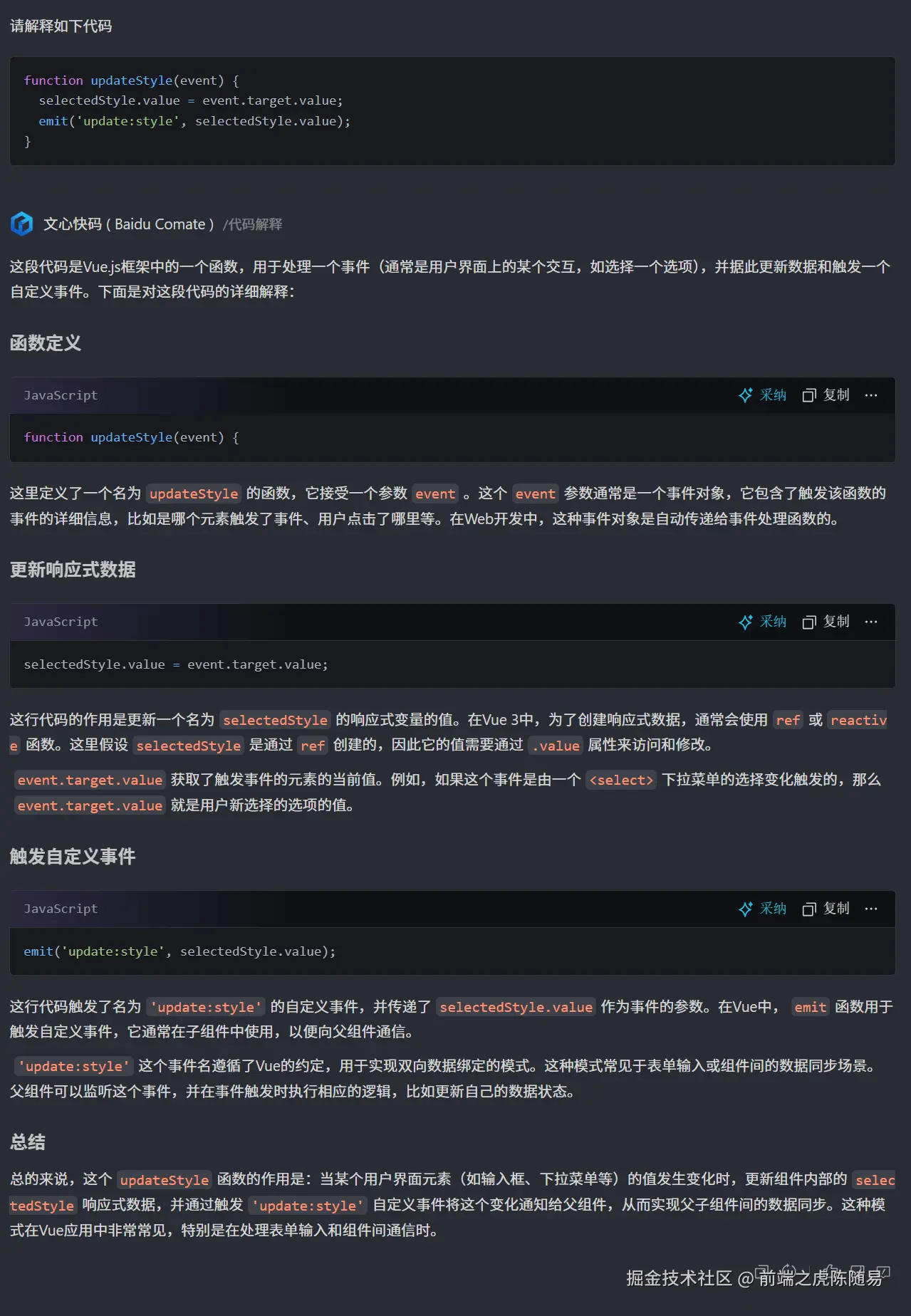 当我点击 解释代码,对当前函数的解释非常详细,面面俱到,生怕你不理解。