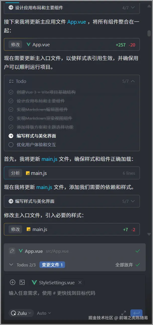 界面设计识别度高,文字和编辑有非常明显的区分和层次,让人一眼就能看到 这个工具它到底在做什么,适合想对 AI 的过程有一个大概把控的开发者。