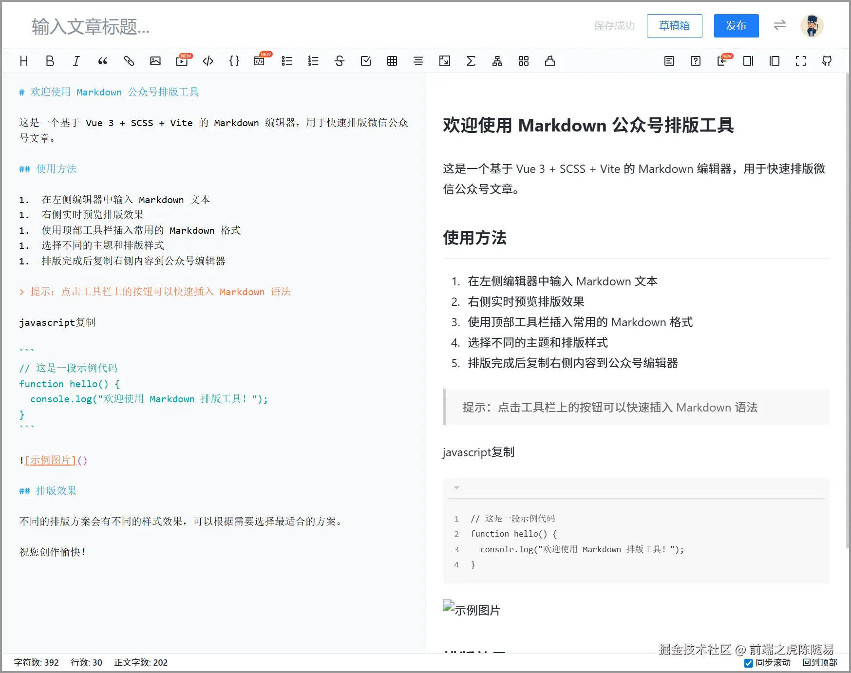 接着又处理了几个报错问题后,咱们的 Markdown排版美化工具 完成了!