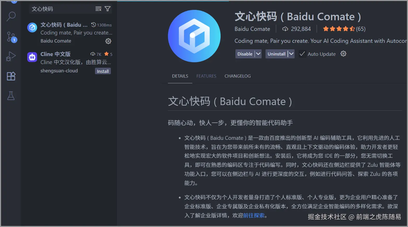 安装方式很简单,在 VSCode 扩展里搜索 文心快码 即可。