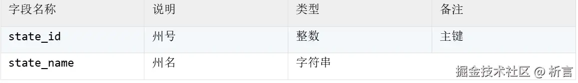 州表 state,存储线下客户所在州数据,数据量较小: