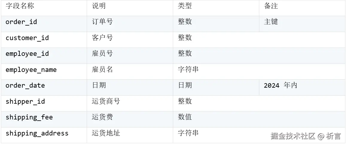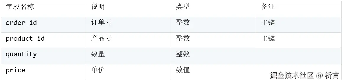 例子表结构是这样的: