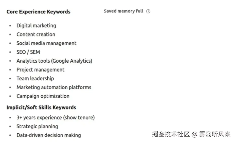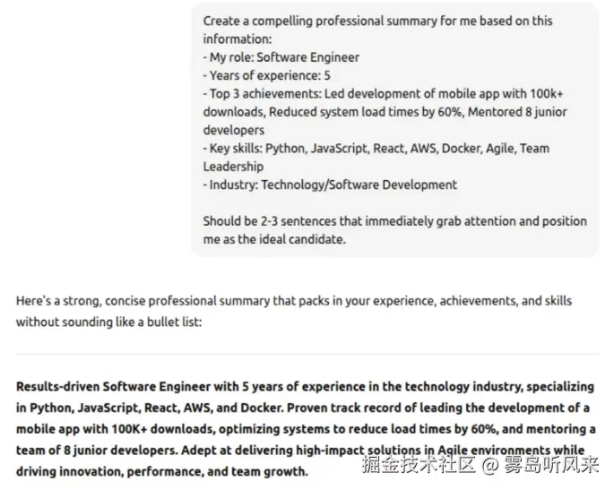 **行业关键字和行话:**ChatGPT能够分析职位描述和当前趋势,这样可以确保简历使用雇主期望的语言,并在内容中无缝嵌入关键字。