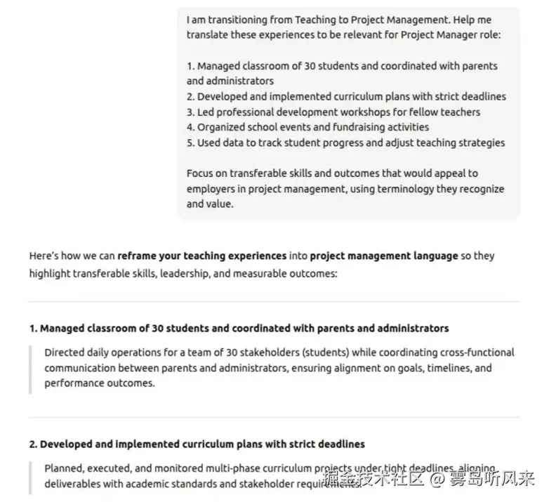 - **为何有效:**对于转行者来说,需要弥合过往经历与未来目标之间的差距。