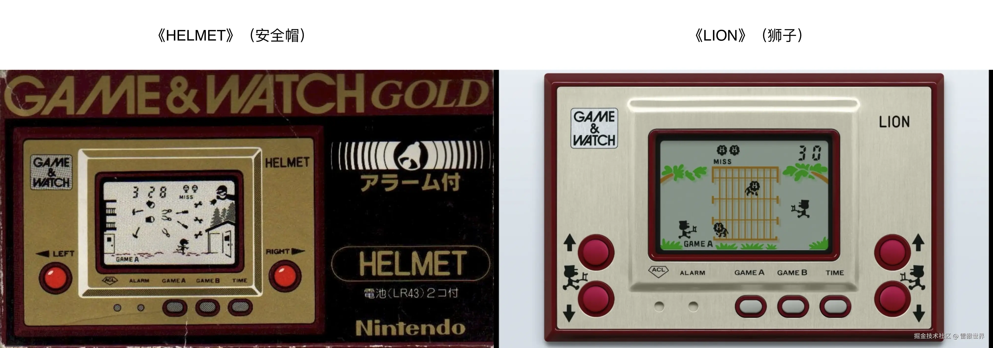 双屏版Game&Watch推出过多款游戏,这个设计也是一代经典了。
