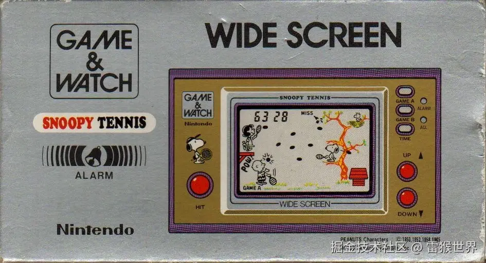 下图是史努比款《SNOOPY TENNIS》,1982年发售,6000日元。
