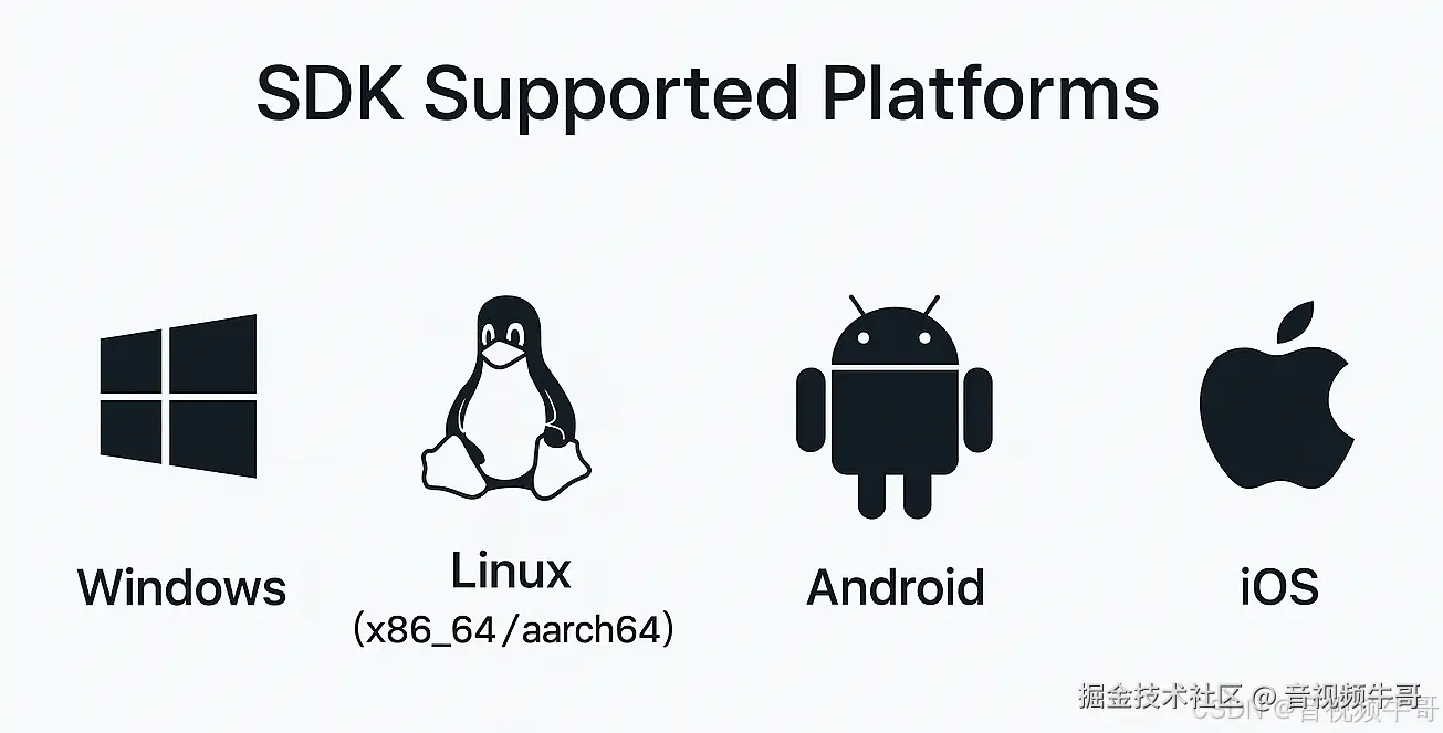 大牛直播SDK RTMP播放器基于 跨平台全自研内核,在 Windows、Linux(x86_64/aarch64)、Android、iOS 四大平台上保持一致的 API 与能力。