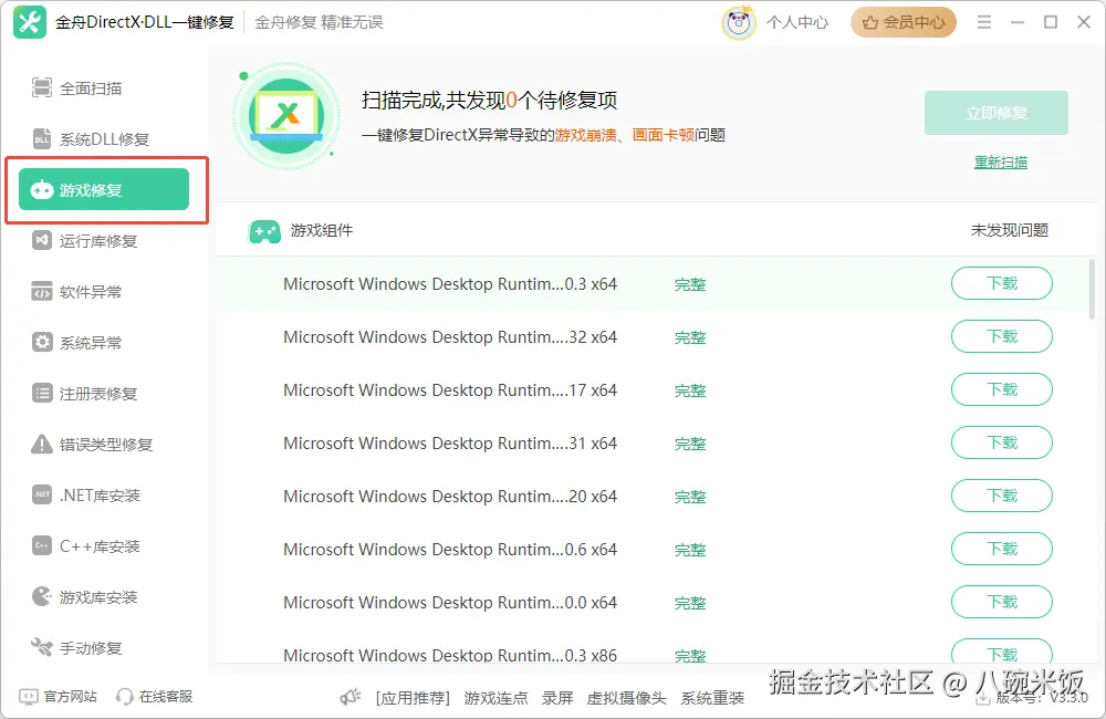 ✅ 优点:恢复丢失的运行库和DirectX 文件,快速恢复丢失的运行库和DirectX 文件