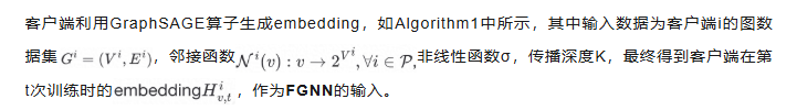 因此GNN模型训练可以分为embedding生成和损失函数计算两个步骤,其中embedding有多种生成算子,例如structure2vec、GCN、GraphSAGE等。我们采用GraphSAGE作为本文的embedding生成算子,首先对节点的embedding进行初始化,即: