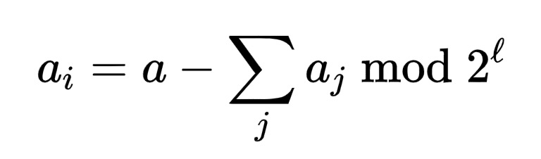 特别的,令t=n,我们设计了一个n-n加法秘密分享算法,即若想恢复原始秘密,则需要得到所有的密文。