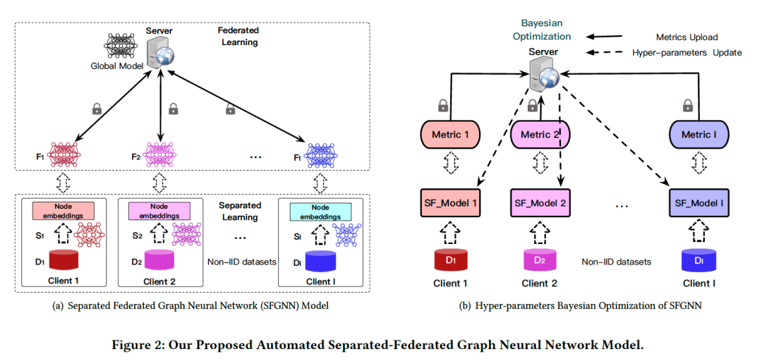 综上所述,在保证数据隐私的前提下,针对多方非独立同分布数据(Non-IID),实现图神经网络模型的联合训练及自动超参调优是目前急需解决的问题(如下图所示)。