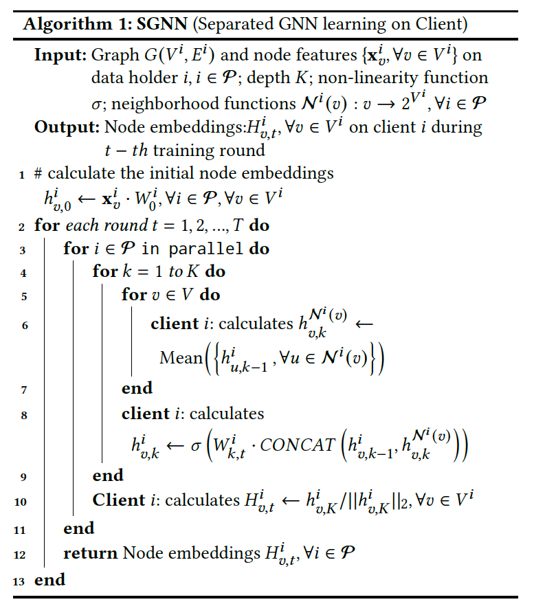(1)SeparatedGNN learning(SGNN):客户端采用不同的超参数分别计算得到各自节点的embedding。