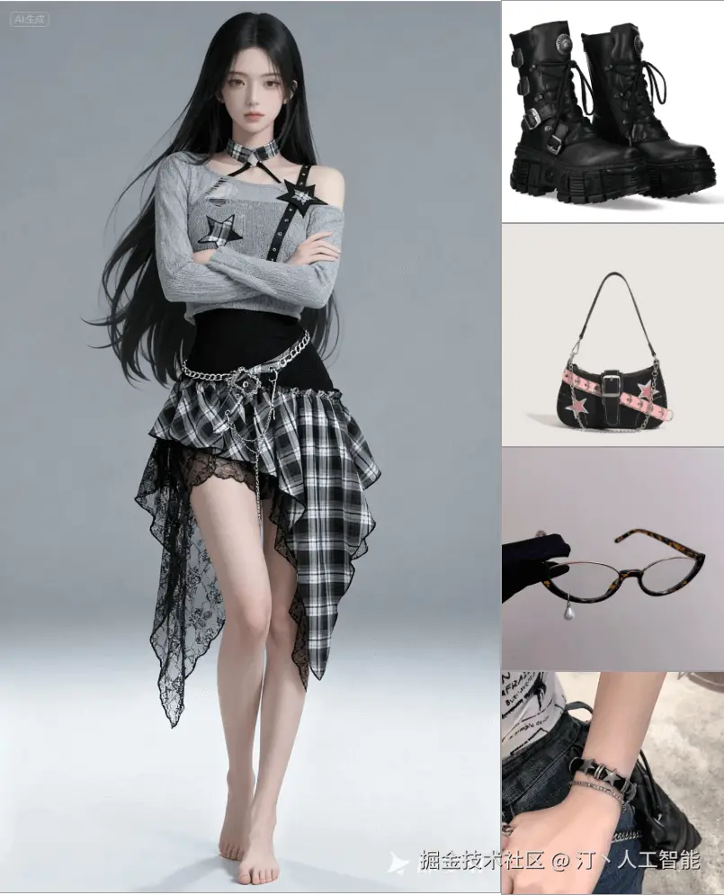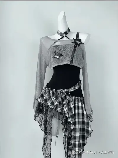 提示词:给图 1 的女生换上图 2(下图)中的套装