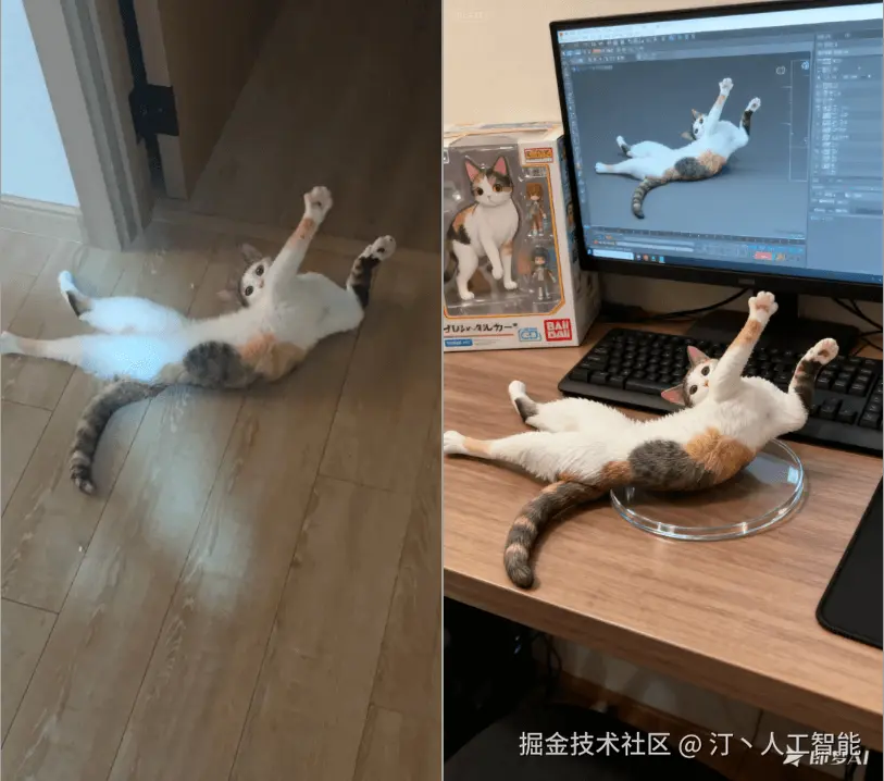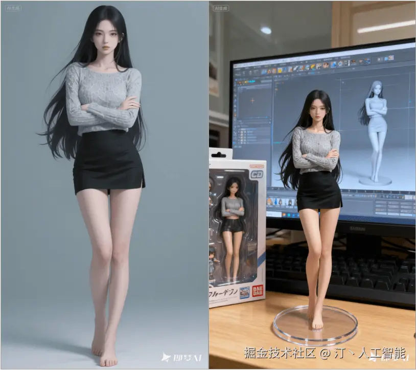 生成的手办图片非常真实,人物姿态、五官、表情、服饰、拍摄角度等细节都和原图一致。