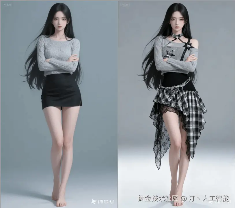 还是上面的模特,我们可以一句话生成各种服饰试穿的效果。