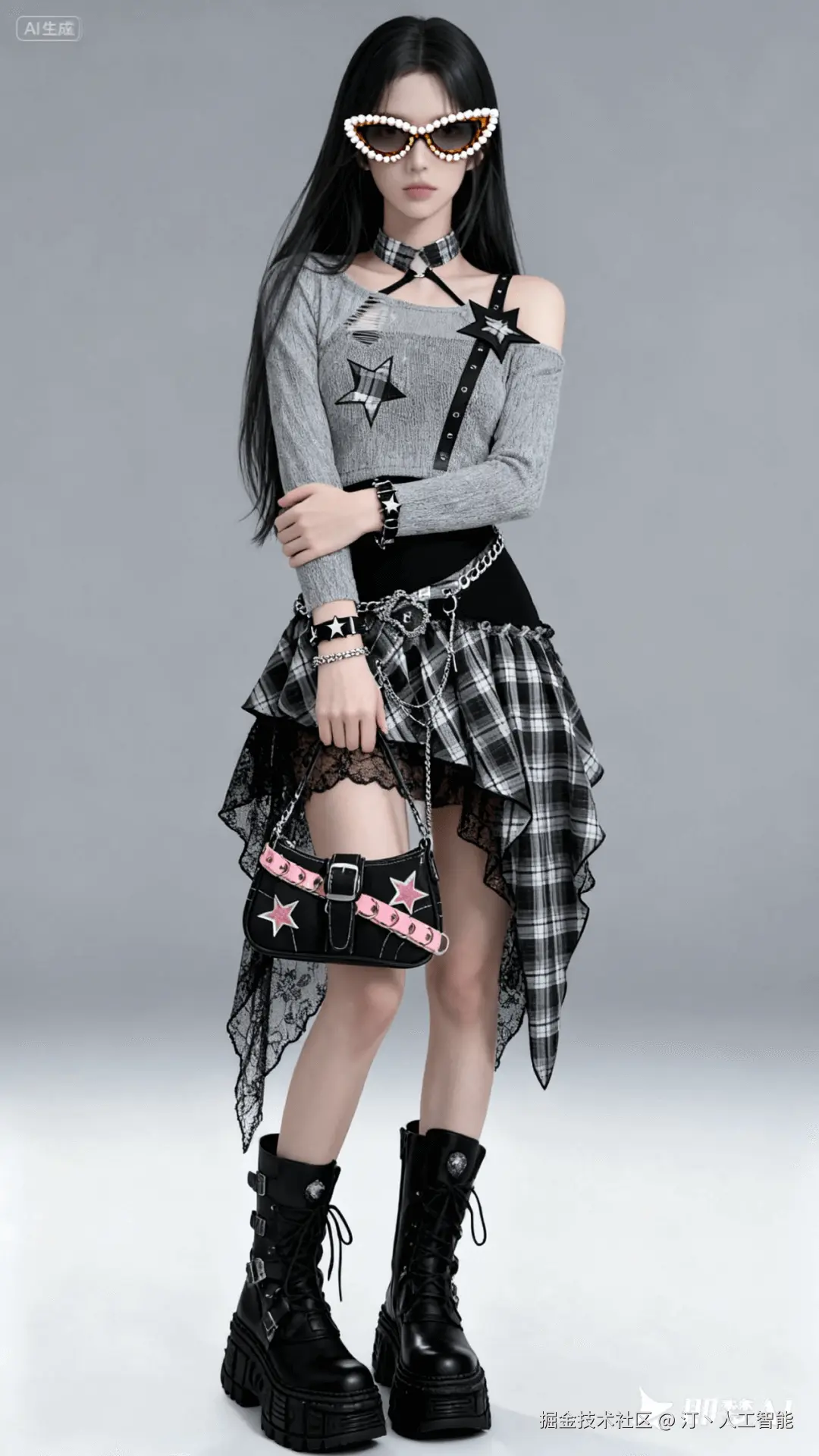 包包、手链的细节,就连鞋子上的搭扣装饰都还原了,不过,眼镜的识别还不太精准。