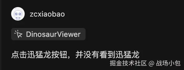 因此看不到迅猛龙(这里真的有些🐷了,当前页面中显示的就是迅猛龙,当时误解为霸王龙了,毕竟霸王龙他大啊),选中了迅猛龙按钮元素,传递到 Agent。