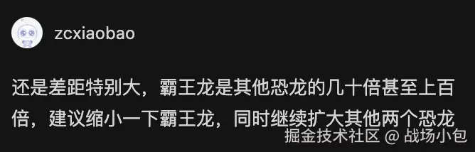 根据我的需求,文心快码 3.5S调整了迅猛龙的位置,才发现中间躲着一个小龙(霸王龙)。突然意识到,可能是模型大小存在差异,我倒,但问题是此时我还是认错了龙。。。。