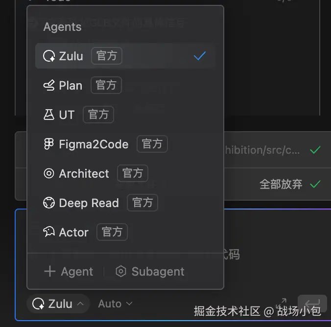 先插入几句,使用的时候,发现文心快码 3.5S 提供了多种 Agent,当时就很疑惑,提供这么多是在做啥那?于是小包去稍微查了一下,大致如下