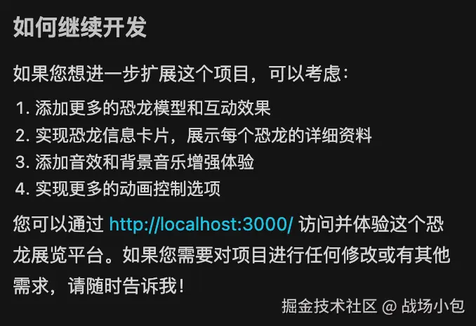 - 在恐龙乐园的整体代码生成过程中,中途没出现过一次报错,这部分真的惊叹到小包了
