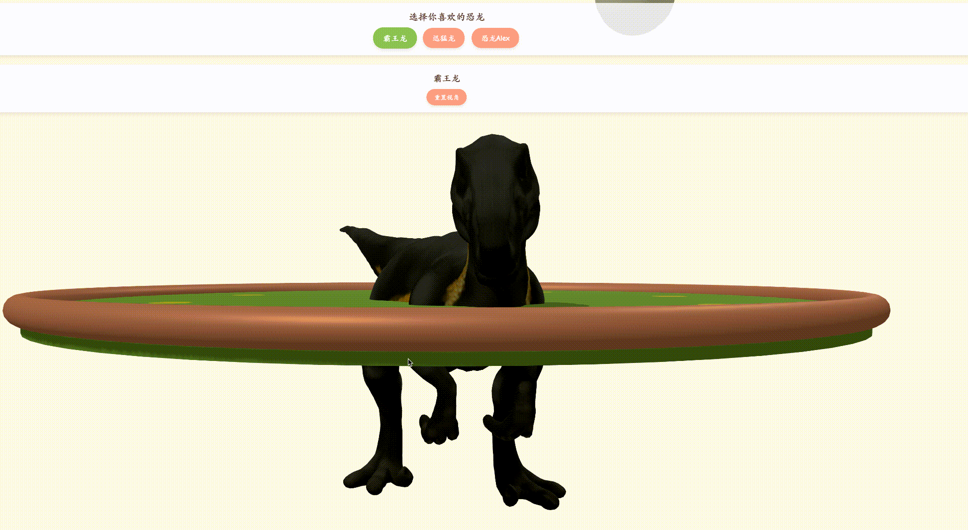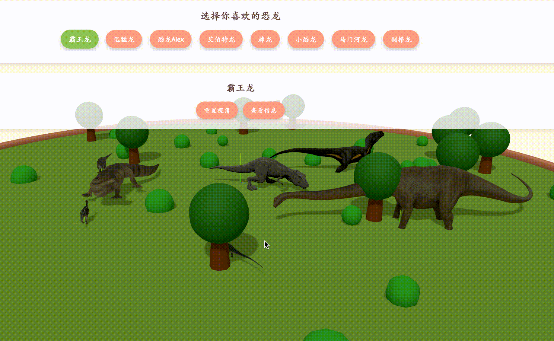 - 点击选择xxx龙按钮没反应(这里其实并没问题,迅猛龙的模型过大,导致挡住了其他两个模型)