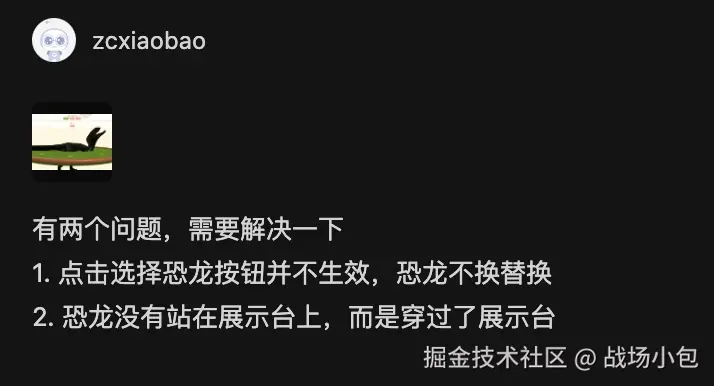 根据我的需求,文心快码 3.5S调整了迅猛龙的位置,才发现中间躲着一个小龙(霸王龙)。突然意识到,可能是模型大小存在差异,我倒,但问题是此时我还是认错了龙。。。。