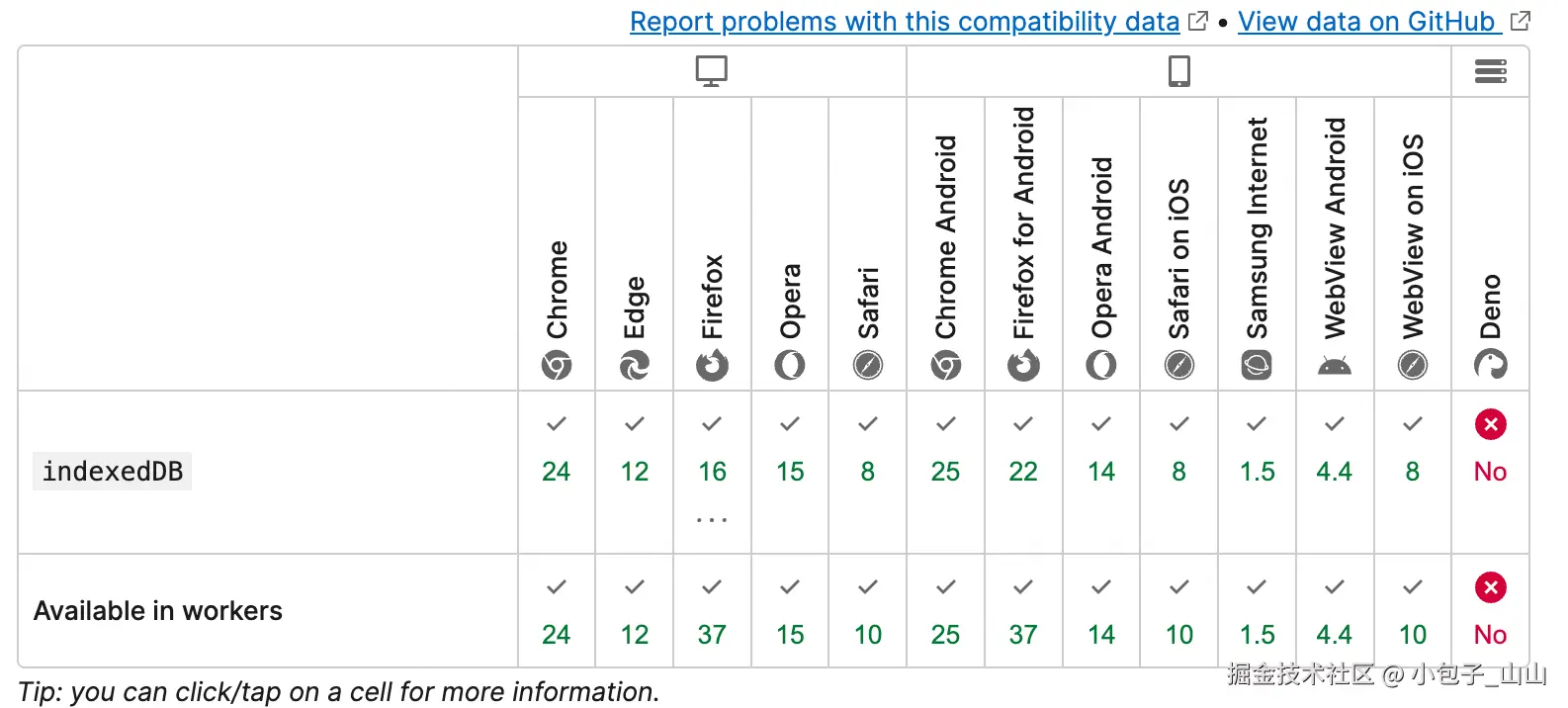 - 所有现代浏览器(Chrome、Firefox、Safari、Edge)都支持 IndexedDB。