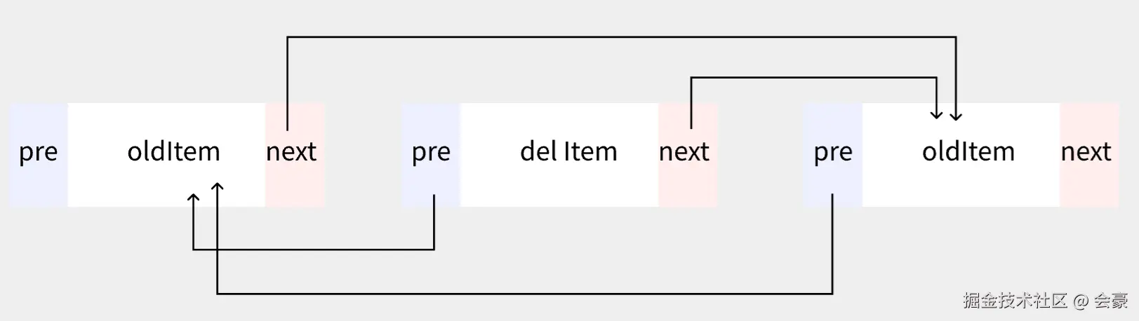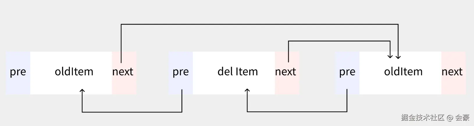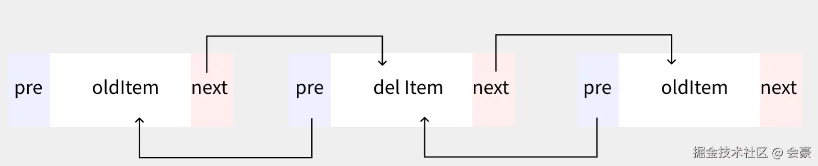在removeAt方法里面,我们在删除某个元素是,此元素的pre和next并没有赋为null,只是把该元素的引用全都清空掉了,这时就需要提到 JS 里面的垃圾回收机制