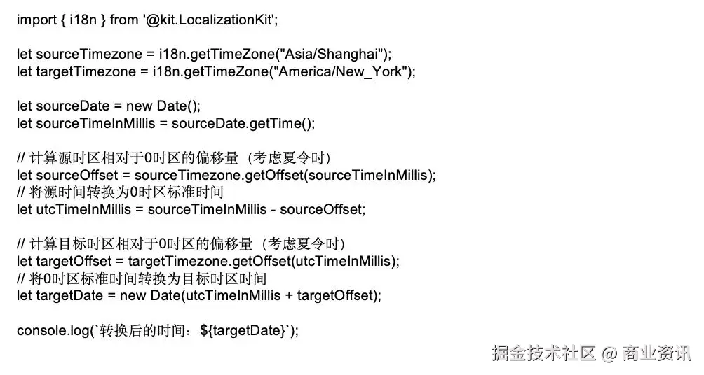 ·使用系统提供的准确的时区转换方法。确保在获取时区对象和进行时间转换时,正确处理时区的固定偏移量和实际偏移量(考虑夏令时)。例如,在将一个本地时间转换为另一个时区的时间时: