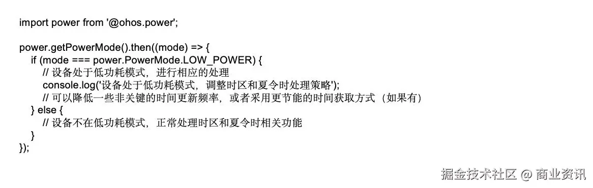 ·检测设备的低功耗模式状态。鸿蒙系统可能提供了相关的接口或事件来获取设备的电源状态信息,开发者可以利用这些来判断设备是否处于低功耗模式。例如: