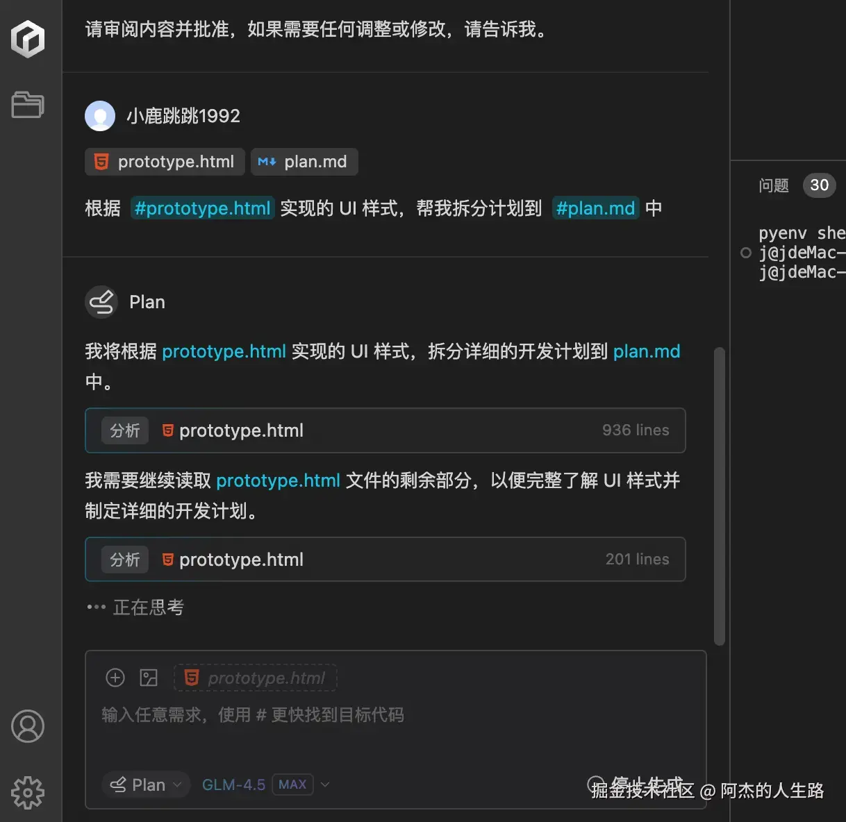 然后我们让他自主生成计划并实现。