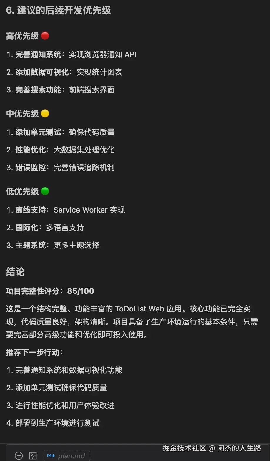 里边涉及了 项目概述、技术栈、页面结构分析、详细的开发计划、开发里程碑、甚至 UI CSS 样式也已经给到了。
