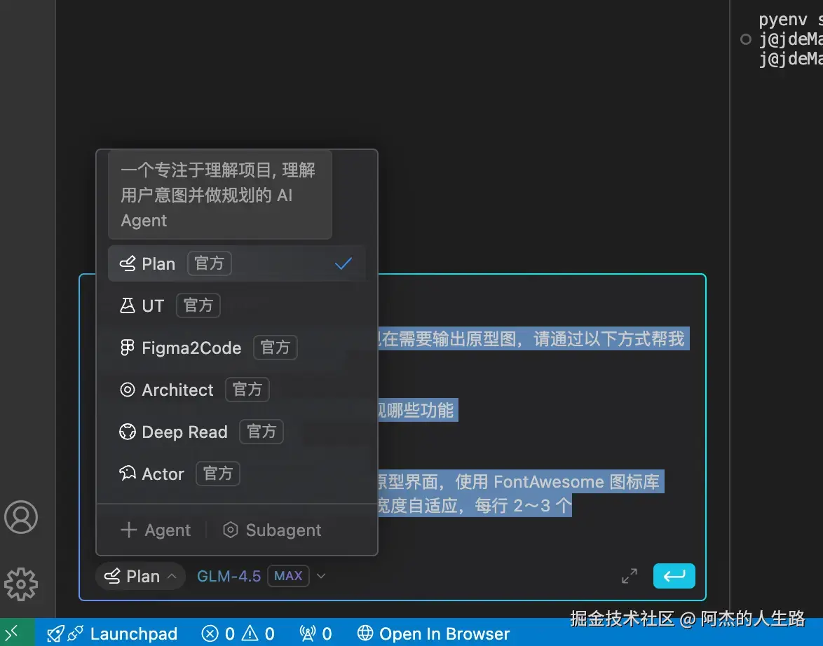 - 多智能体无缝协同: 不同智能体各司其职,Plan 负责规划,Zulu 负责编码,UT 负责测试,就像一个真正的开发团队,无需人工在多个工具间切换,大幅减少了沟通成本与操作繁琐度。