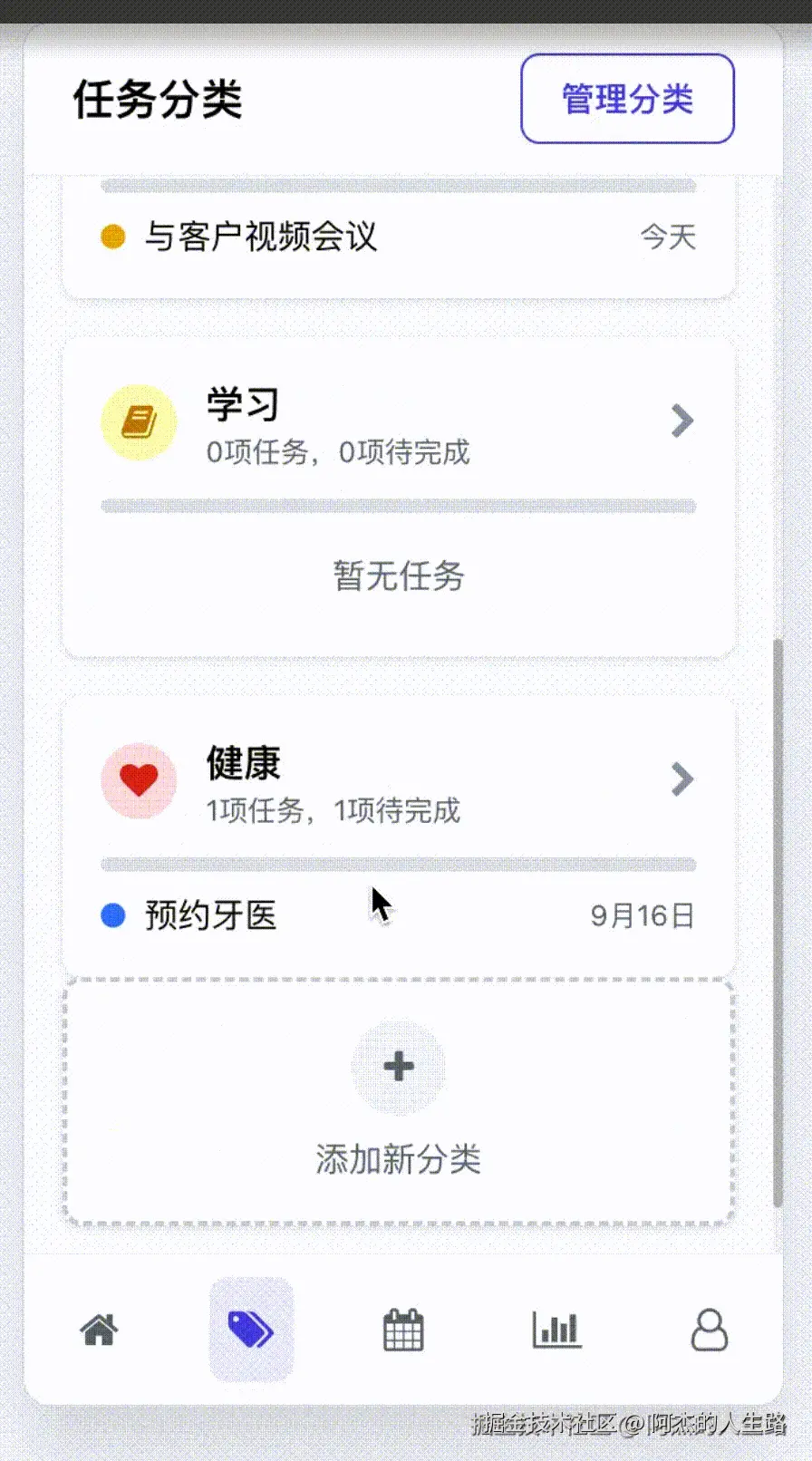 - **核心功能**: 管理任务分类和查看分类进度