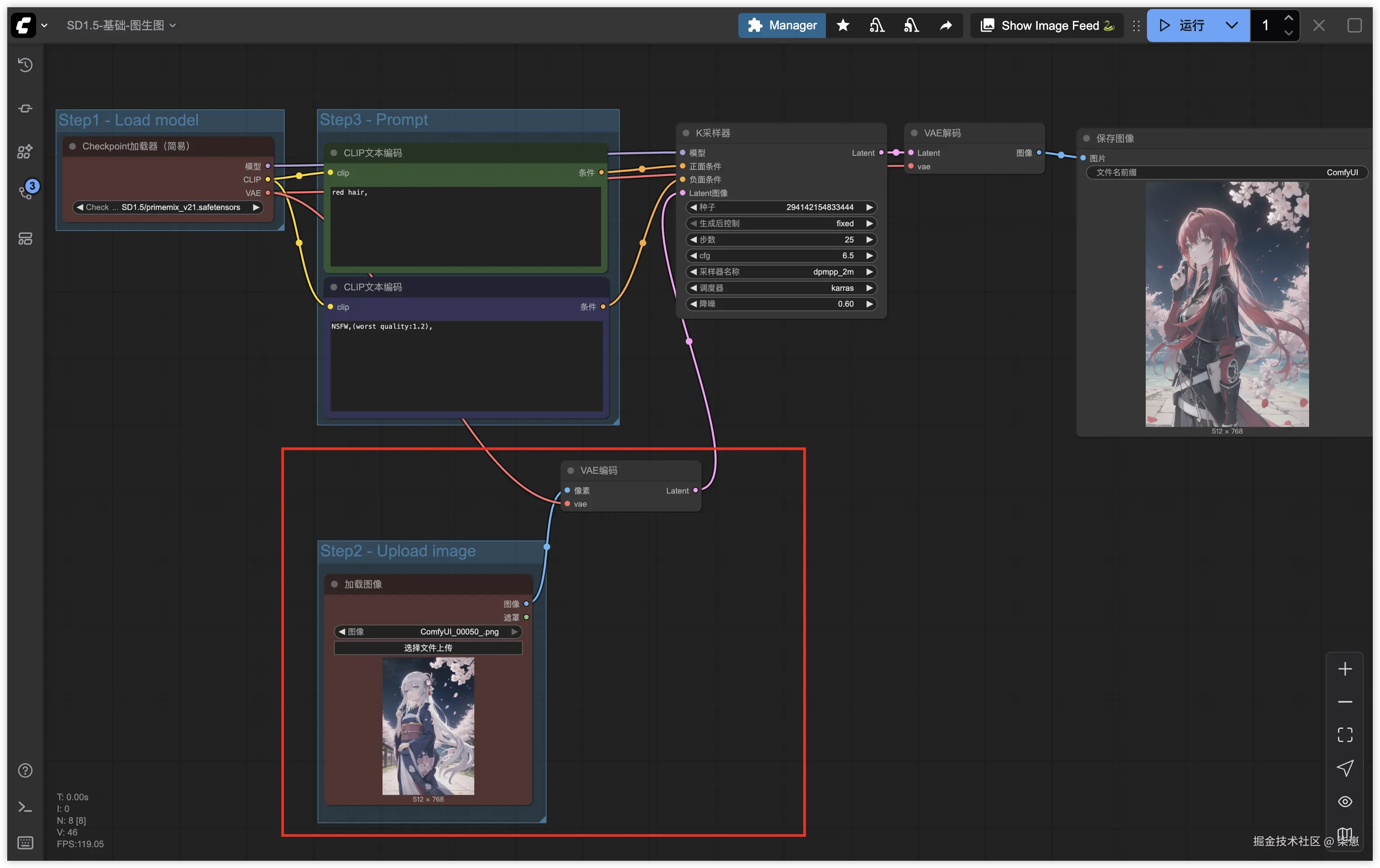 模型使用的基于SD1.5的动漫风格模型primamix。没有的可以在文章最后找到下载链接。