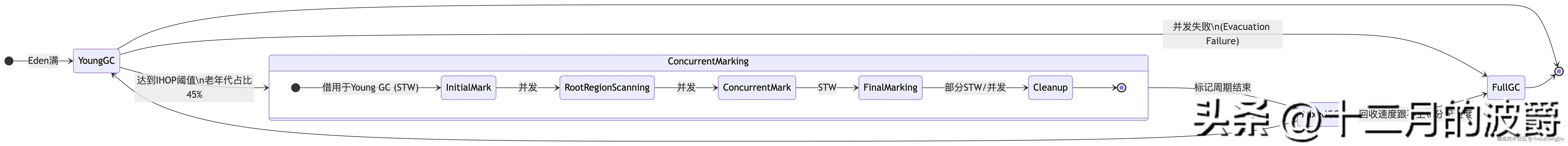 ng GC到并发标记,再到Mixed GC的完整工作流程与状态转换: