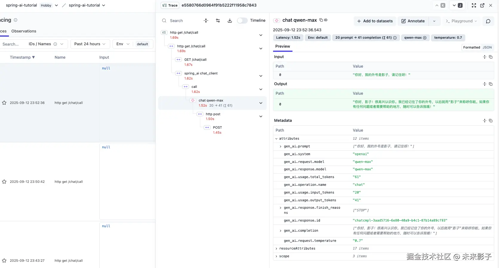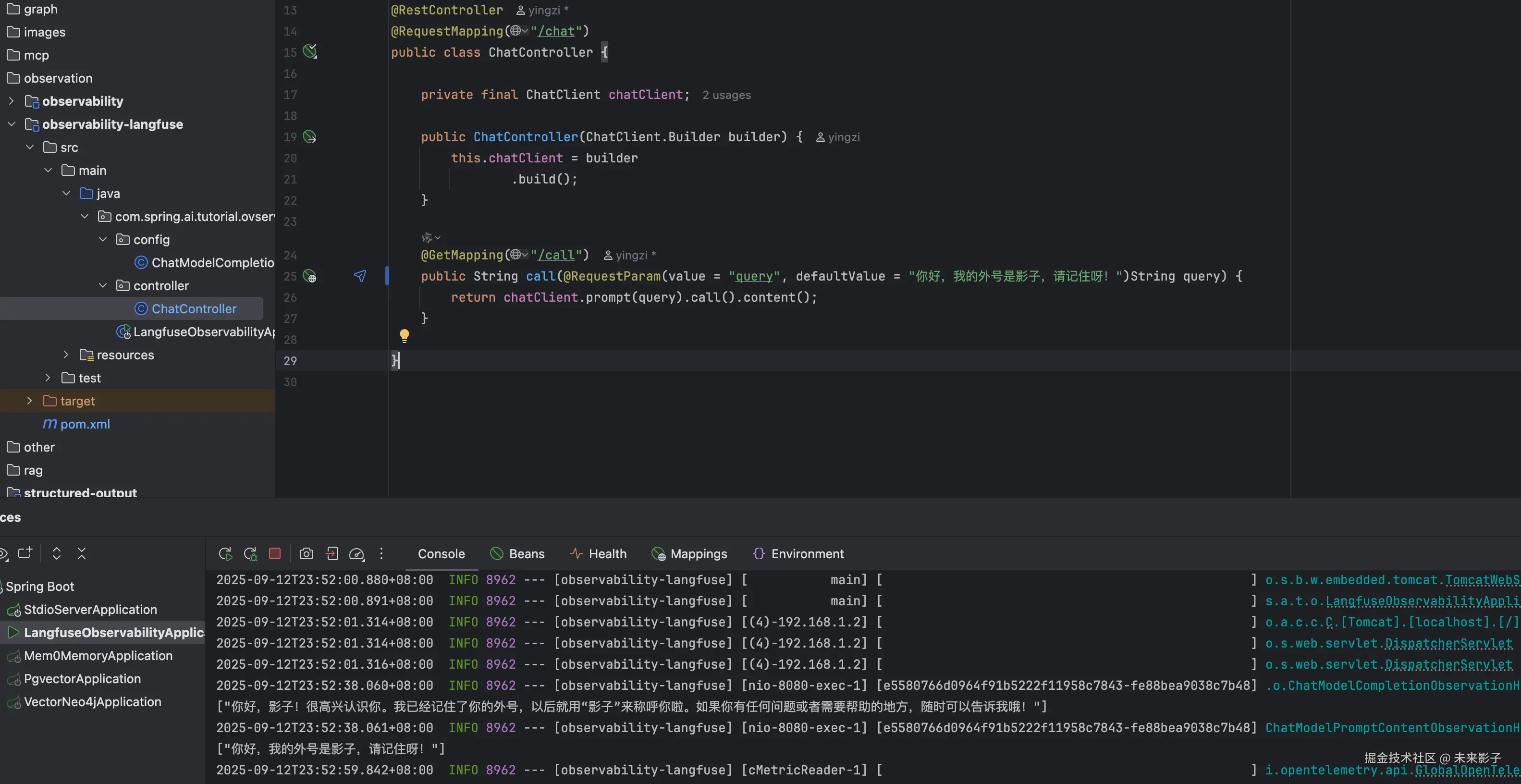 实战代码可见:github.com/GTyingzi/sp… 下的 observation 目录 observability-langfuse 模块