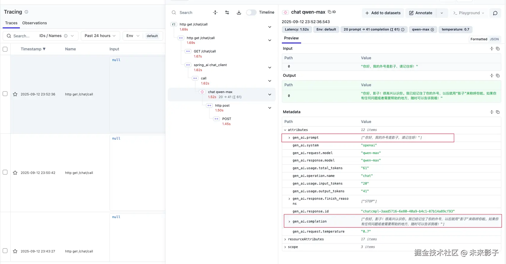 - gen_ai.completion:值为AI模型的输出