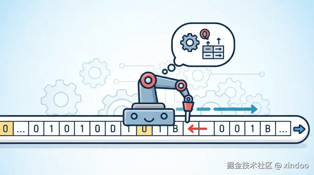 本质上,无论我们的业务逻辑多么盘根错节,架构多么复杂,对于任何一个代码逻辑而言,其路径都是线性的,这本质上就是图灵机的运行模型。在图灵机模型中,我们可以把程序看作是一个读取输入、改变状态并产生输出的有限状态机。无论多复杂的程序,在任意时刻,它都只能处于一个确定的状态,并按照预设的规则转移到下一个状态。这意味着,即使是最复杂的系统故障,也有其发生的确定路径和原因。而我们排查问题的过程,其实就是一个逆向工程:根据问题发生后留下的“表象”(如错误日志、异常监控),反向追溯并重建出那条独一无二的、导致了错误的线性执行路径。