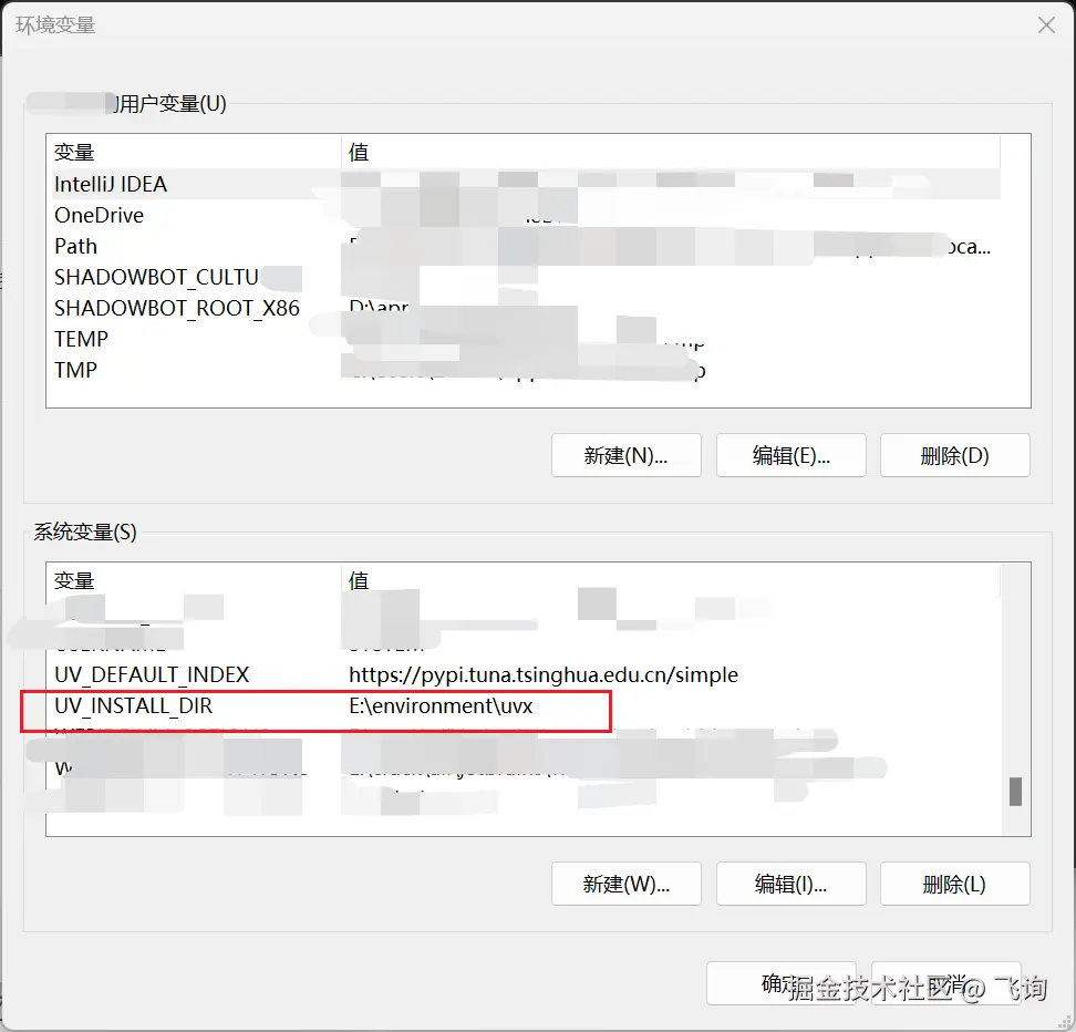 添加环境变量:UV_INSTALL_DIR