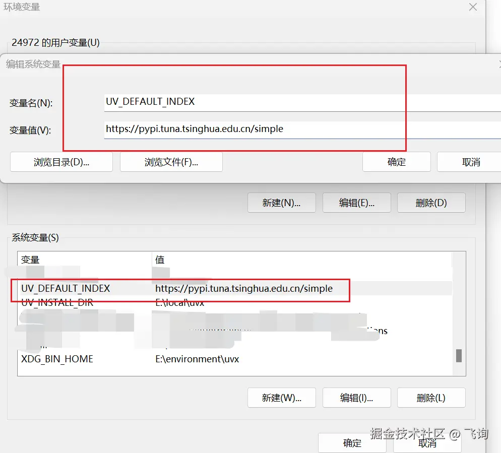 添加环境变量:UV_DEFAULT_INDEX