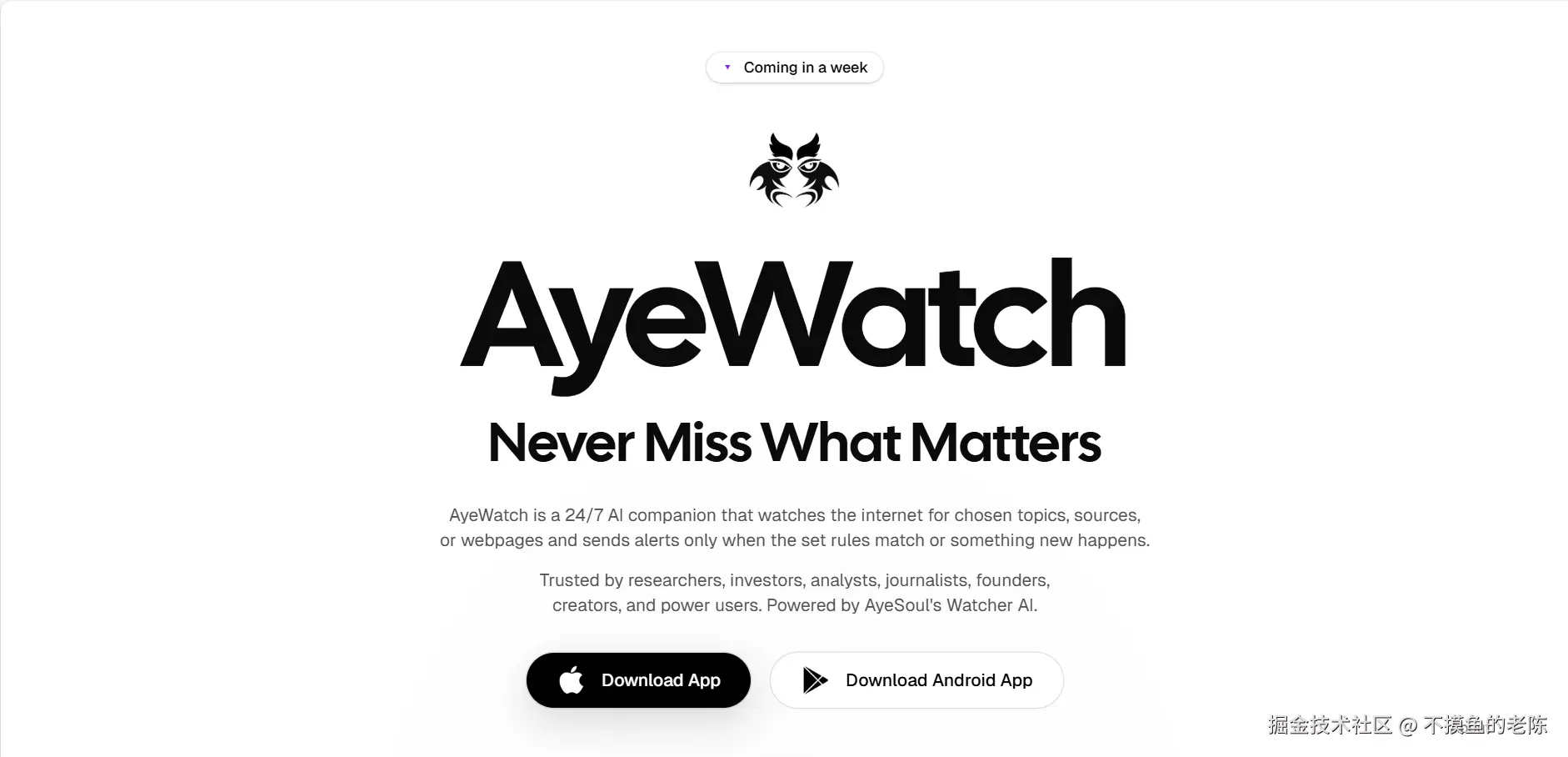 AyeWatch AI是一款互联网监控应用,基于多代理AI技术,能够过滤噪音,仅在重要信息出现时发出警报,适用于商业、投资、研究等多个领域。